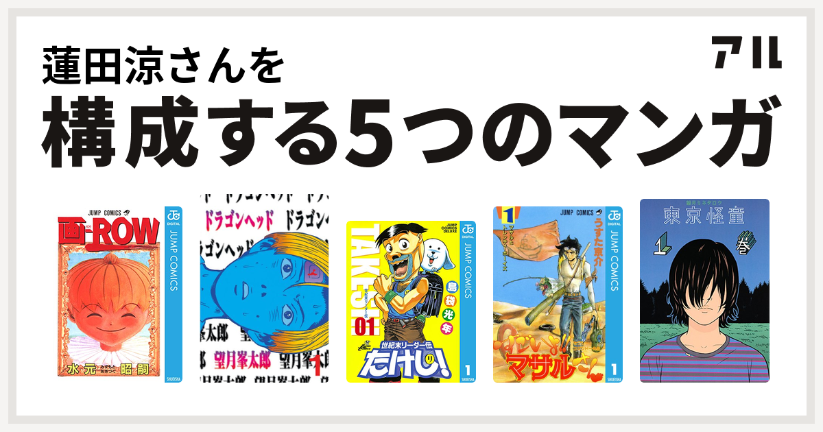 蓮田涼さんを構成するマンガは画 Row ドラゴンヘッド 世紀末リーダー伝たけし セクシーコマンドー外伝 すごいよ マサルさん 東京怪童 私を構成する5つのマンガ アル